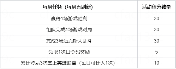 以周为单位,完成所有每周任务视为【活跃周】,连续点亮活跃周获得额外积分。
