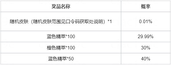 *注意:通过本活动兑换的口令码中可能获得的随机皮肤范围见口令码获取处展示。