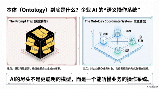 这就是本体最大的价值:它不是替模型思考,而是给模型一个不会轻易走偏的业务坐标系。让AI和人、规则引擎、流程系统、数据平台,说的是同一种业务语言。