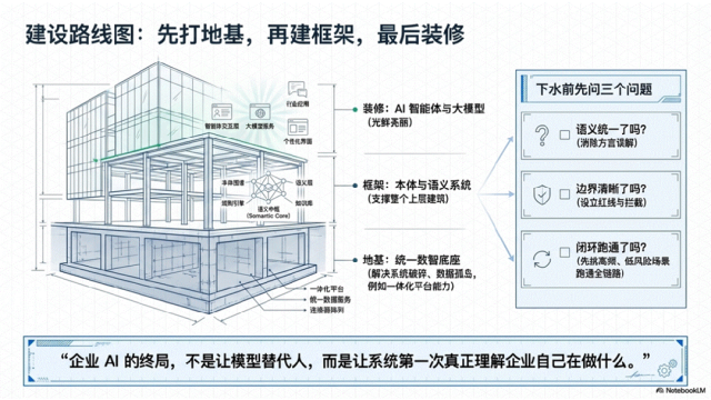 三大坑不填平,企业AI就很容易变成一个昂贵的演示工程:看起来先进,用起来全靠补丁,出了问题谁都说不清,到底是模型错了,还是业务根本没定义明白。