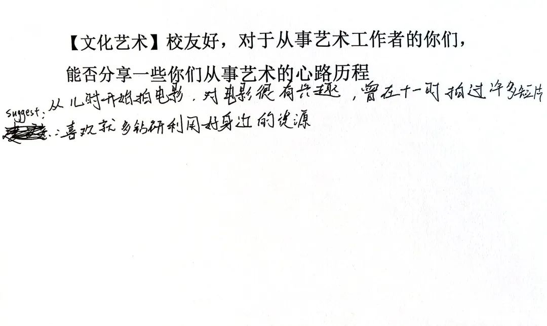 行业校友交流会上,各行各业的校友们提笔认真写下自己的经验与想法,解答学弟学妹们的困惑。