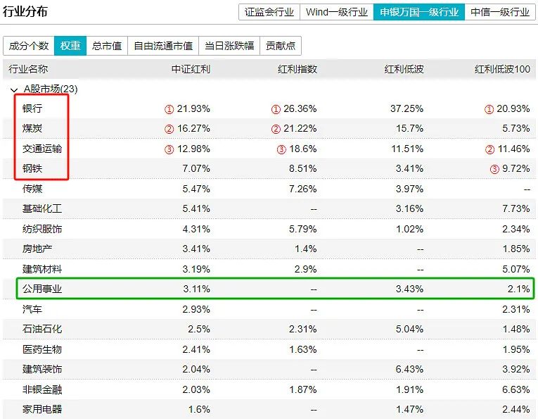 公用事业,今年很火,红利属性也很强,但在红利指数中的权重并不高。