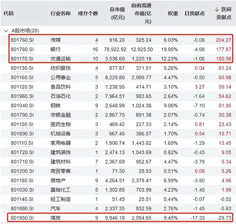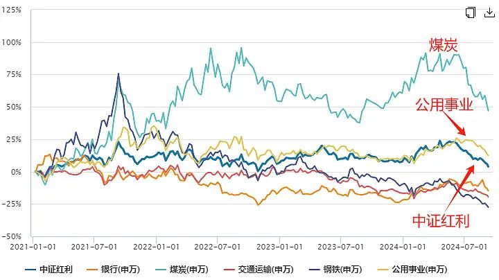 银行、煤炭、交运、钢铁,大概占了红利指数约60%的权重。