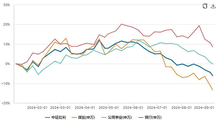 但不巧的是,6月后高股息逻辑走弱,煤炭、公用事业先后下跌,银行撑到8月底后也开始了一波急跌,这才有了中证红利17%的回调。
