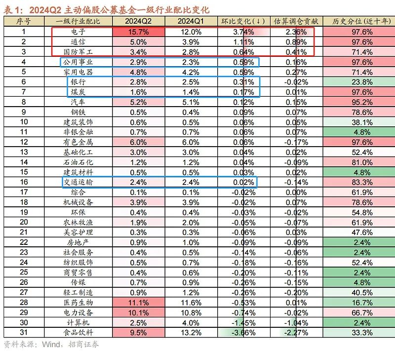 二季度,公募基金虽然增持红利、价值,但增持更多的还是电子、通信、军工,对医药、新能源、食品饮料的绝对持仓也很高。