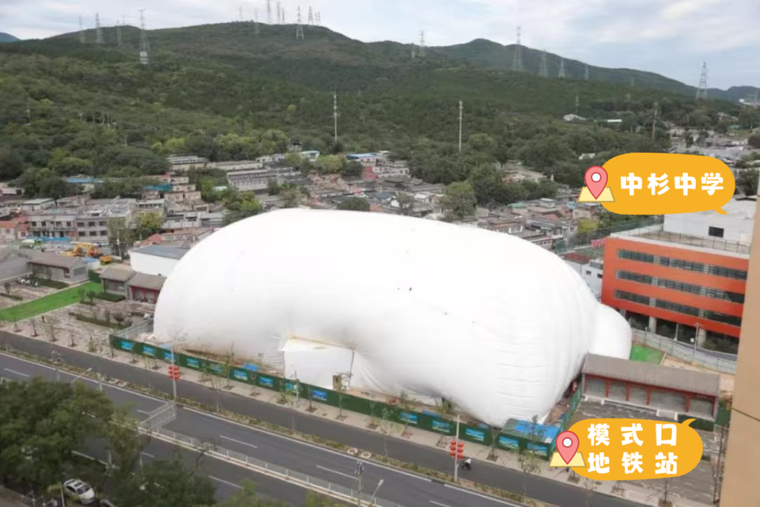 一个大大的气囊坐落在石景山中,与中杉肩并肩齐坐着。
