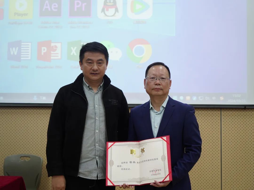 首先特邀请昆明传媒学院教务处和冬生处长为雷磊教授颁发“客座教授”聘书,接着雷磊教授带领我们开启知识之旅。