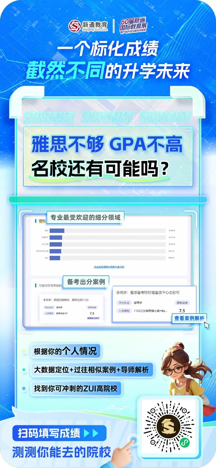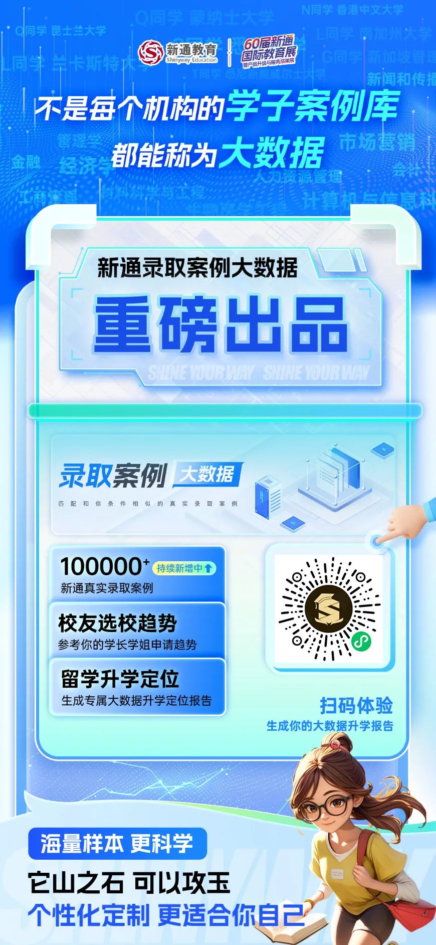 不是所有的案例都能真正为你的升学选择提供有价值的参考,一个基于真实大数据的平台对于每一位希望科学规划自己升学之路的学生都至关重要。“新通录取案例大数据”帮助你定位到最适合自己的学校,在激烈的竞争中脱颖而出!