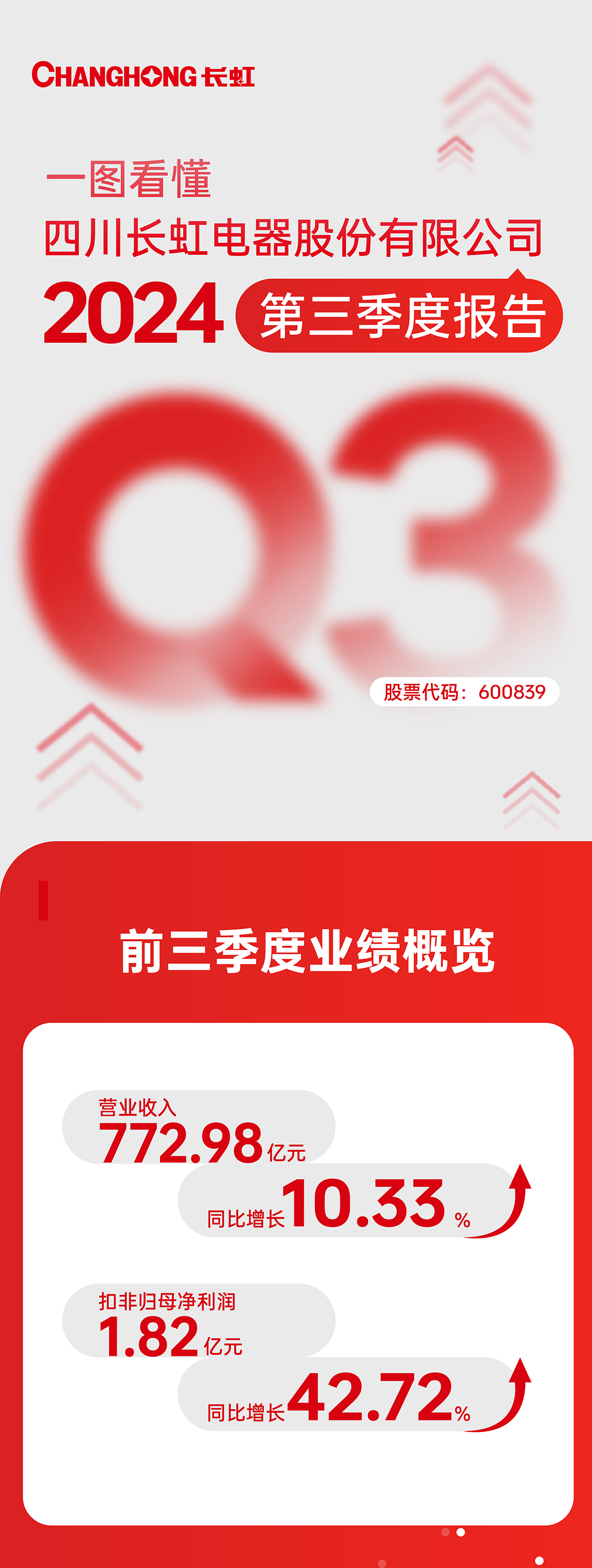 四川长虹前三季度:扣非归母净利润同比增长42.72%