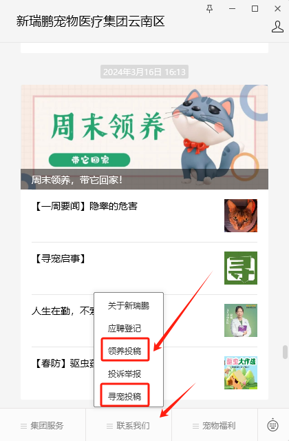 在公众号下方菜单栏-联系我们