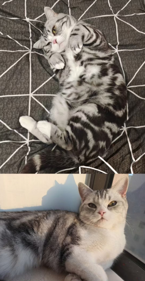 1.公猫(图片中深色)5岁已绝育,拥有卡姿兰大眼睛,性格粘人乖巧,会听口令会坐会握手。