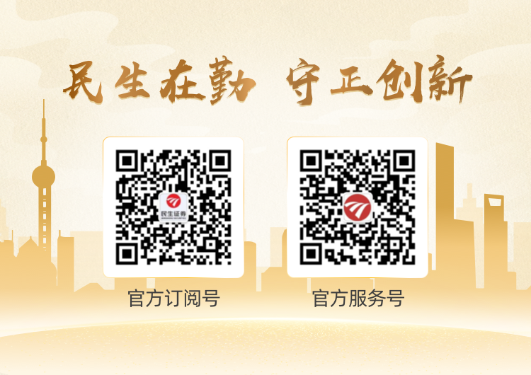 免责声明:以上内容基于本公司认为可靠的已公开信息整理形成,民生证券力求但不保证内容的准确性和完整性,不保证已做最新变更。以上内容仅供参考,不构成民生证券做出的投资建议、收益承诺或对任何观点的认可。投资者应自主进行投资决策,民生证券不对使用本资料所产生的任何直接或间接损失或与此有关的其他损失承担任何责任。市场有风险,投资需谨慎。民生证券版权所有并保留一切权利。