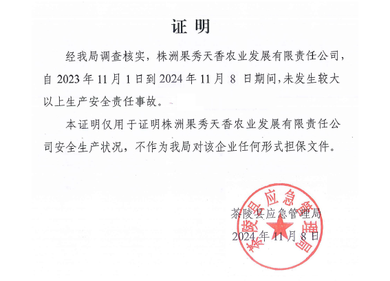 3、未发生农产品安全质量安全事故证明