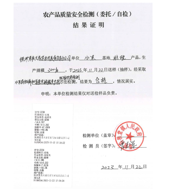 2、农产品质量安全检测结果证明