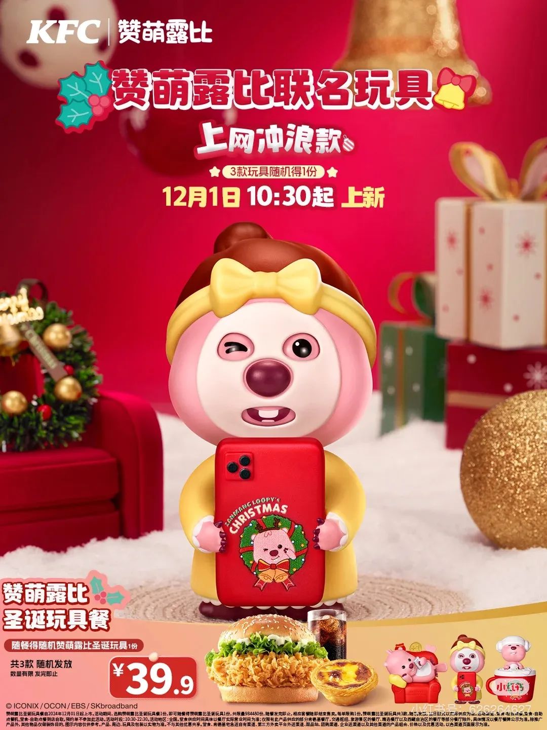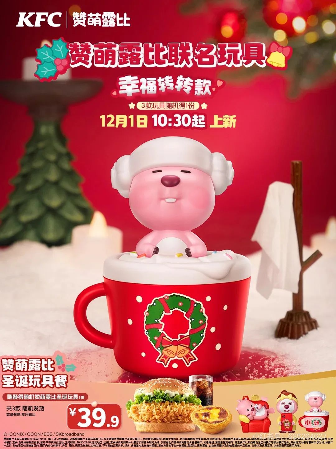 玩具:联名款圣诞玩具1个(3款随机)