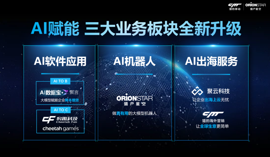 自2010年成立以来,猎豹移动已历经14年的发展历程,在全球化服务领域深耕多年,作为中国第一批成功出海的互联网企业,猎豹移动凭借工具应用开拓了全球市场。近年来,猎豹移动战略转型从传统的2C业务转向以AI和大模型为核心的2B业务。去年年底,猎豹移动已正式宣布完成了对猎户星空的战略性收购,进一步加强在AI服务机器人和AI大模型领域的布局,为猎豹移动带来了前所未有的发展机遇。