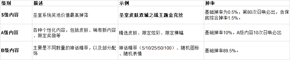 得到所有S级和A级内容后,如果继续召唤,每次开启到S和A级奖励会替换成一定数量的神话精萃——S级多于A级。