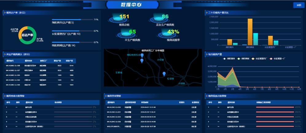 长虹iMold云模具作为模具软硬件一体化管理云应用,实现了模具管理的智能化全面升级。该应用实现了模具位置、寿命、状态、使用履历、保养计划的精准制定与执行,以及模具维修申请与维修记录的全面管理,还通过集成无线传输技术、4G/5G专有数据采集硬件设备,实现了模具管理的智能化、自动化、快速化、无纸化,显著减少了人工干预,降低了出错率,提高了响应速度,确保了对模具位置与状态的实时精准掌握。
