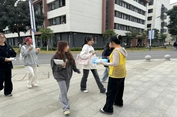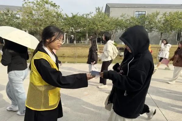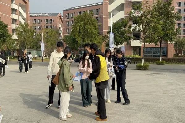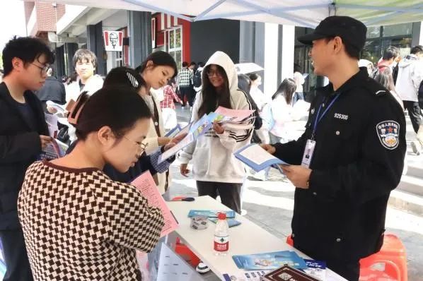 活动期间,志愿者们在校园内精心设置了5个反诈宣传点位,这些点位巧妙地分布在两个食堂周边的主要通道和学生活动频繁的区域。上午10点至10点半,正值学生上下课高峰期,志愿者们抓住这一有利时机,积极穿梭于人群中,递送精心设计的反诈宣传单页,并简要介绍反诈要点,有效提升了师生的防骗意识。