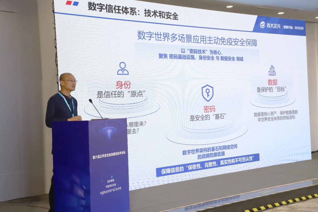 吉大正元作为中国领先的数字安全综合服务商受邀出席,副总裁田景成在论坛上做题为《构建数字信任体系 数字安全赋能数字经济》的演讲。