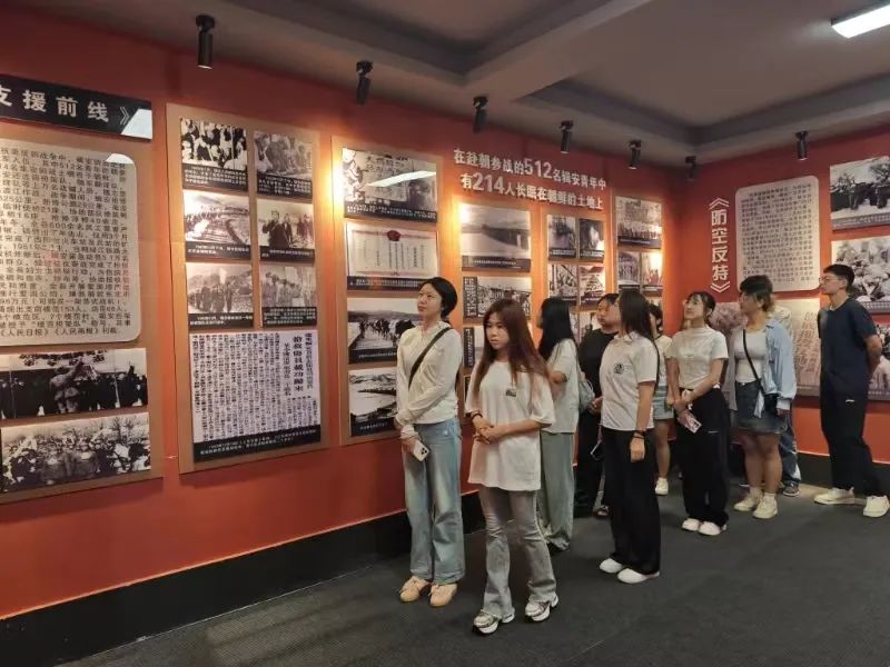 实践团来到集安市抗美援朝首渡村,参观了抗美援朝微展馆,感受历史的厚重和战争的硝烟。馆内通过大量的历史照片、文物、文献资料以及多媒体展示,生动再现了抗美援朝战争的全过程。实践团成员参观后对抗美援朝战争的历史有了更深入的了解和认识,对那段烽火连天的岁月充满了敬意和感慨。