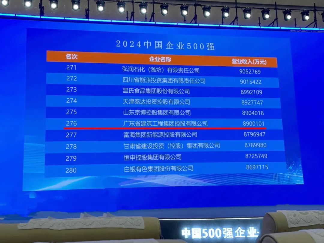 集团新闻 | 广东建工控股位列中国企业500强276位