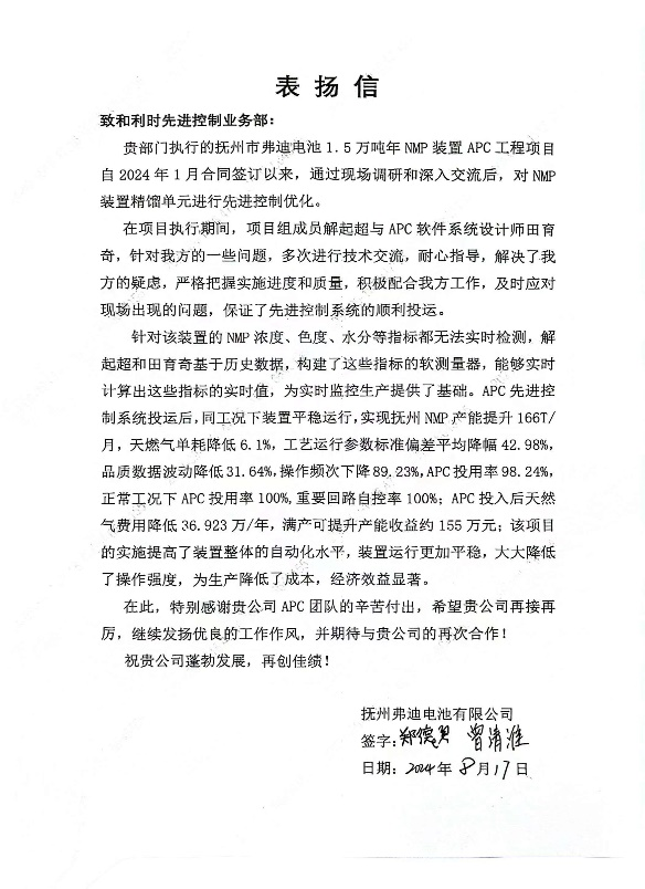 鉴于本试点项目的全面成功,比亚迪集团现已与和利时签订了全国12个基地NMP装置的先进控制优化项目。这一合作不仅展现了双方在技术创新和智能制造领域的深度合作与高度信任,还为新能源电池行业的智能化转型与可持续发展注入了强劲动力。