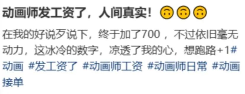 举个例子来说,曾有从事动画师工作的网友发帖,表示在自己好说歹说之下,工资终于加了700。