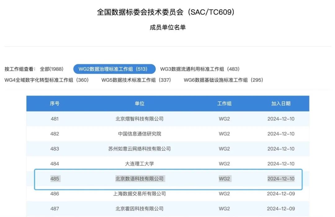 全国数标委下设五个工作组:数据治理标准工作组(WG2)、数据流通利用标准工作组(WG3)、全域数字化转型标准工作组(WG4)、数据技术标准工作组(WG5)、数据基础设施标准工作组(WG6)。Datablau数语科技凭借在数据治理领域的出色能力,成功入选全国数标委WG2数据治理标准工作组,将积极参与到全国数标委数据治理相关标准制定和修订等工作中,为行业的持续发展贡献自己的专业力量。作为深耕数据治理领域多年的专业服务商,Datablau数语科技高度重视数据标准化工作,积极参与数据治理相关标准的制定、推广和应用,重点参编了多项行业标准、白皮书及指南,如《商业银行数据模型白皮书》、《数据模型管理能力成熟度评估模型》标准、《数据治理产品能力测评 数据目录管理工具 第1部分:技术要求》、《数据资产管理实践指南7.0》等,未来,Datablau数语科技将继续发挥在数据要素领域的实践经验和专业能力,与全体成员单位共同推动国家数据标准化建设,助力数字经济高质量发展!
