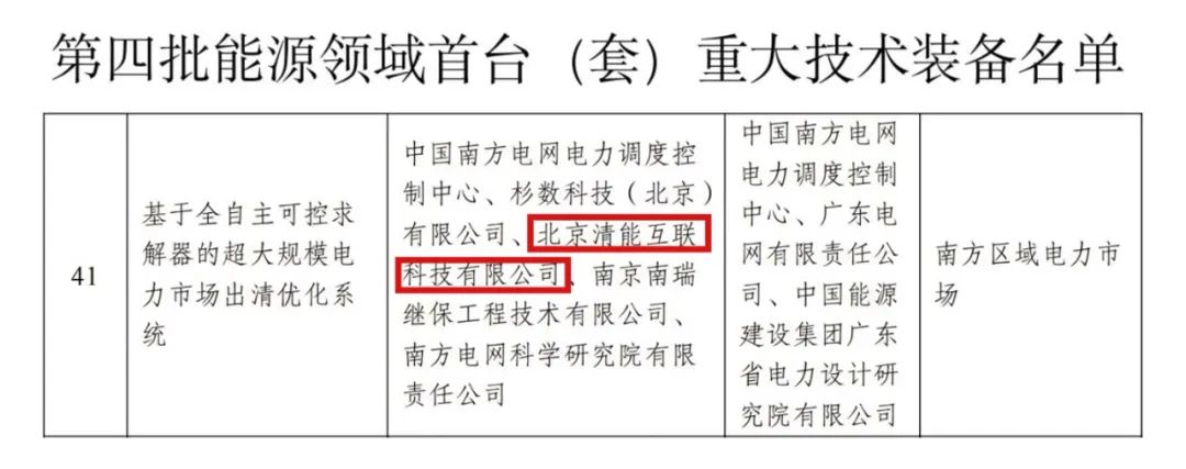 热烈祝贺清能互联“基于全自主可控求解器的超大规模电力市场出清优化系统”成功入选国家第四批能源领域首台(套)重大技术装备名单!