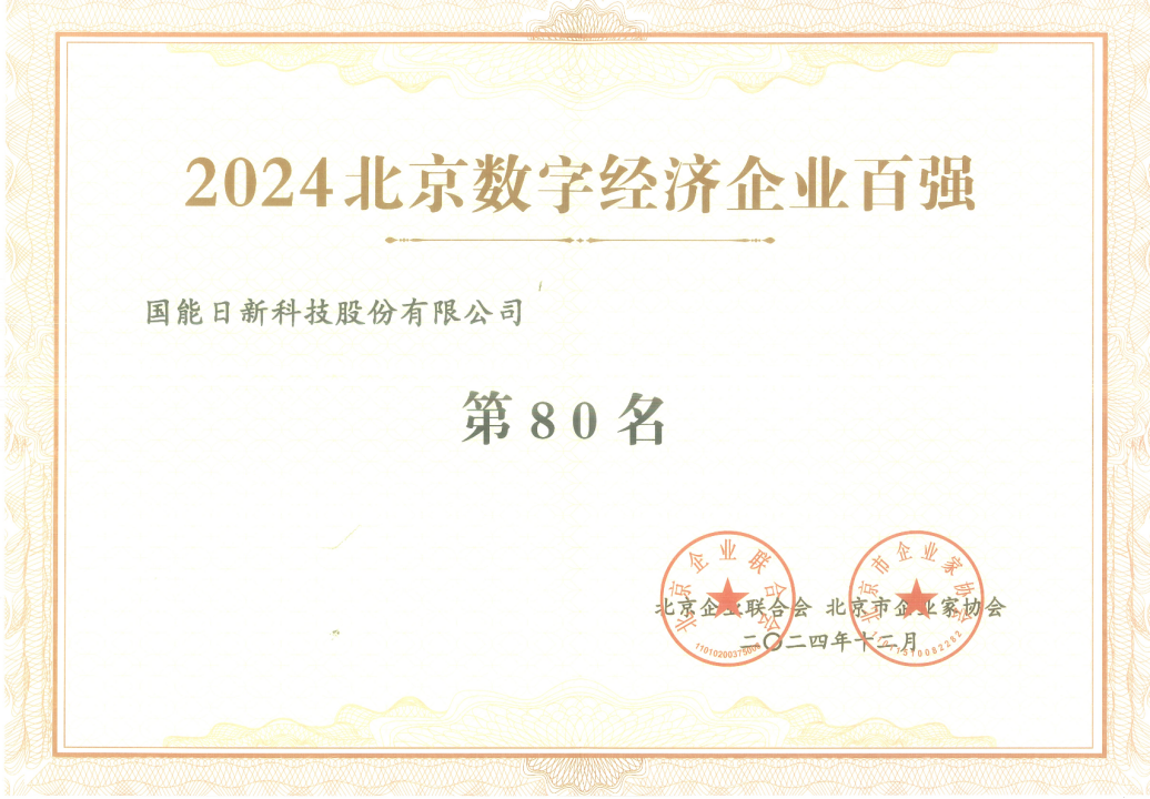 国能日新荣获 “2024 北京数字经济企业百强”,赋能电力新发展