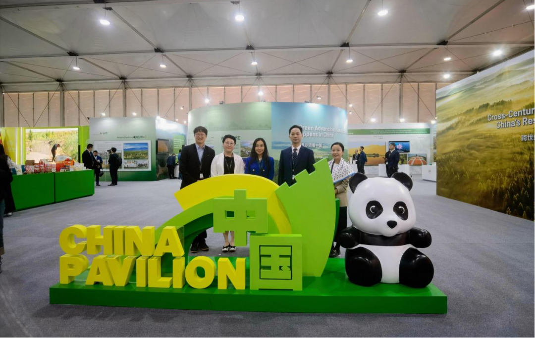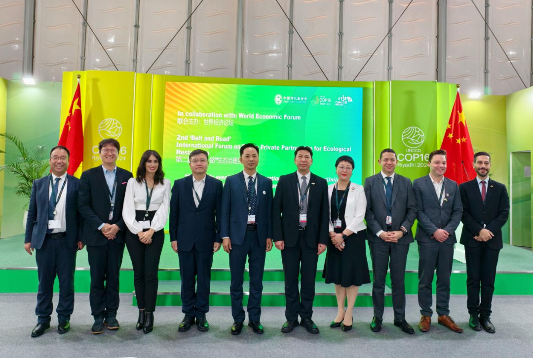 ▲第二届“一带一路”生态治理民间合作暨“万亿棵树”生态恢复创新治理国际论坛在UNCCD COP16“中国馆”举办