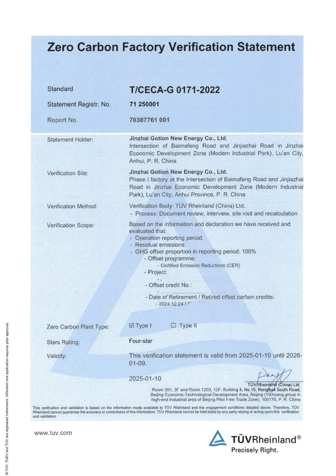 近日,国轩高科金寨工厂荣获TÜV莱茵颁发的T/CECA-G 0171达成零碳工厂证书,成为国轩高科首个零碳工厂,以及业内首个磷酸铁锂储能电池制造零碳工厂。