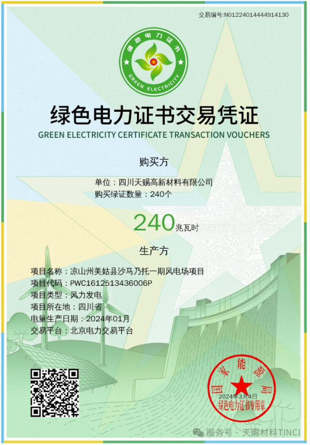 天赐材料努力提升电力交易含“绿”量,2024年多个电解液工厂绿电使用占比有较大突破。