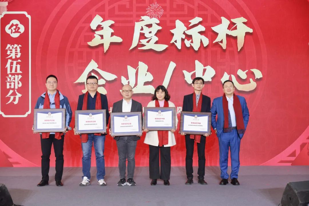 联欢会现场的冰糖葫芦制作、拓印福字等非遗活动,让大家感受到传统文化的魅力。下午2点,鼎龙集团2024年度表彰暨新春联欢会在热烈、欢快的氛围中,正式拉开了序幕。集团副总裁黄金辉先生带领大家回顾了“2024鼎龙集团大事件”,桩桩件件都化作此刻激励全员奋进的磅礴力量。随后进入了表彰环节,大会对过去一年奋力拼搏的优秀个人、优秀部门及标杆企业进行了表彰。(向下滑动查看更多↓)