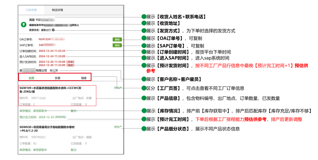 客户信息、订单信息、工厂及产品信息等内容清晰明了,让用户对订单的每个环节了如指掌。