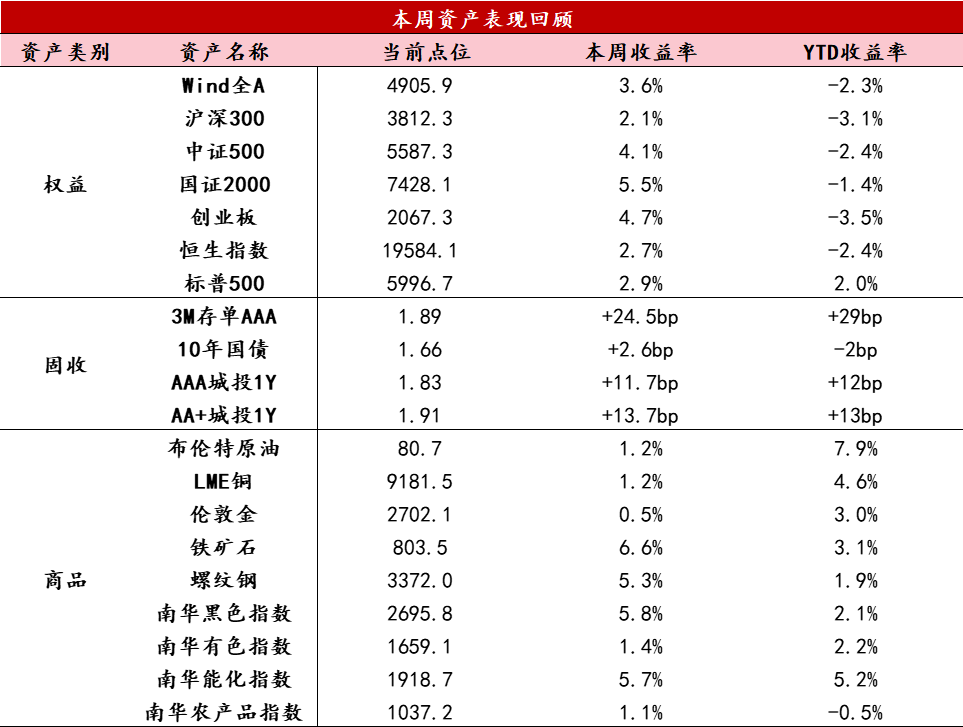 【商品】本周黑色商品价格明显反弹,螺纹表需同比表现超预期,终端建材成交同比有所恢复,随着春节临近产量延续回落,总库存季节性累库、速度偏慢,整体而言春节前螺纹呈现淡季不淡的特征,关注后续需求改善的持续性。本周伦敦金价格小幅上涨,美国12月CPI数据表现温和、核心通胀小幅降温,带动美元和美债利率冲高后走弱,黄金价格延续上涨。