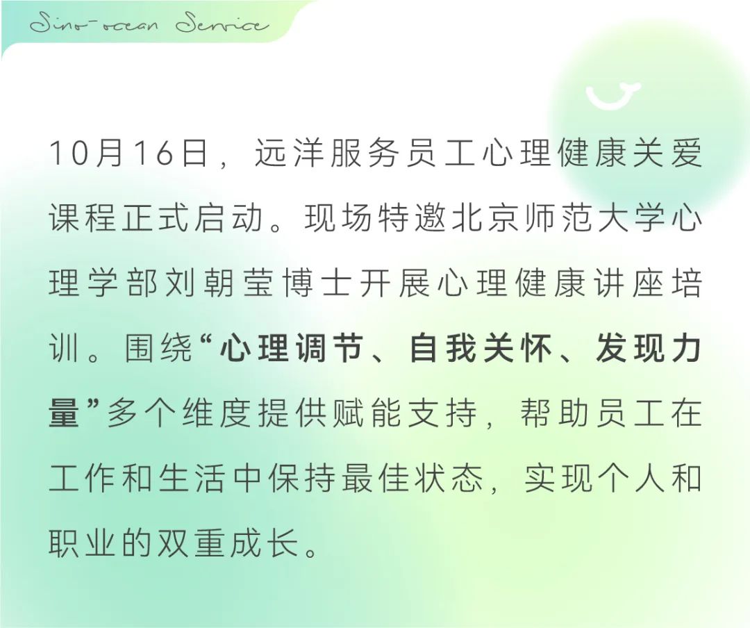 同时,远洋服务将健康理念融入到日常管理中。通过提供健康服务、实施健康运营和给予健康关怀,为业主和员工打造一个绿色、健康的生活环境。