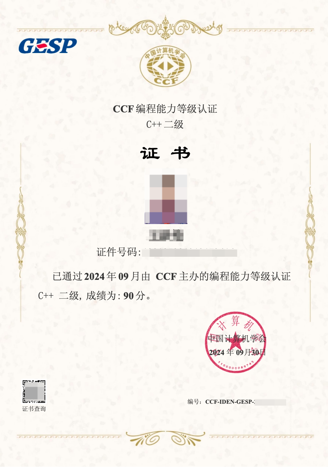 认证方式为全国各GESP考点上机考试,认证语言包括C++、Python图形化编程三种。其中,C++和Python编程为1-8级,图形化编程为1-4级。