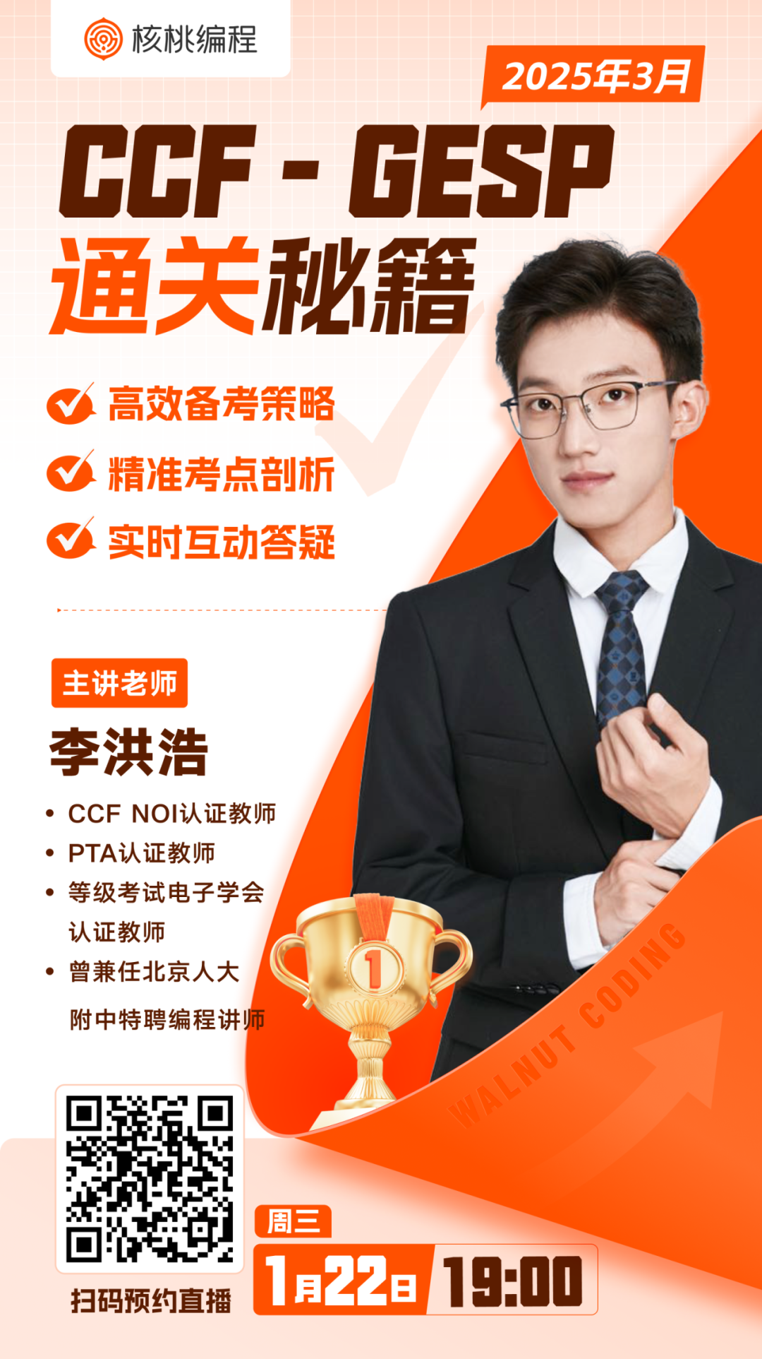 1月22日,核桃特为大家带来GESP备考秘籍直播讲座!