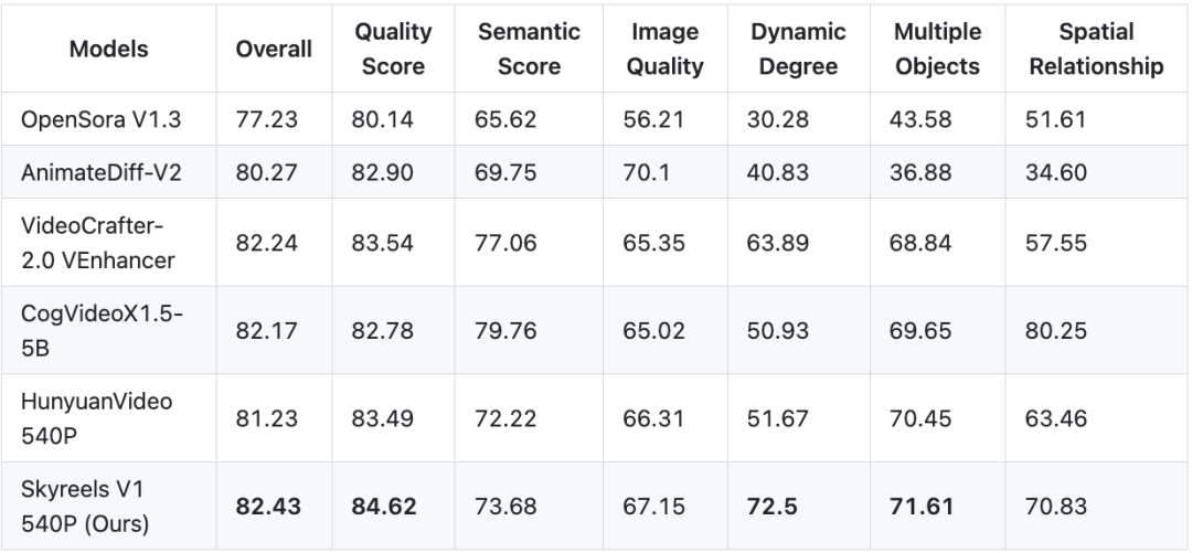 图1丨SkyReels-V1文生视频指标对比(来源:昆仑万维SkyReels)