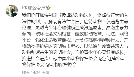 近日,浙江衢州发生的一起虐猫事件引发了全网愤慨,网友们纷纷呼吁出台动物保护法,严惩施虐者。
