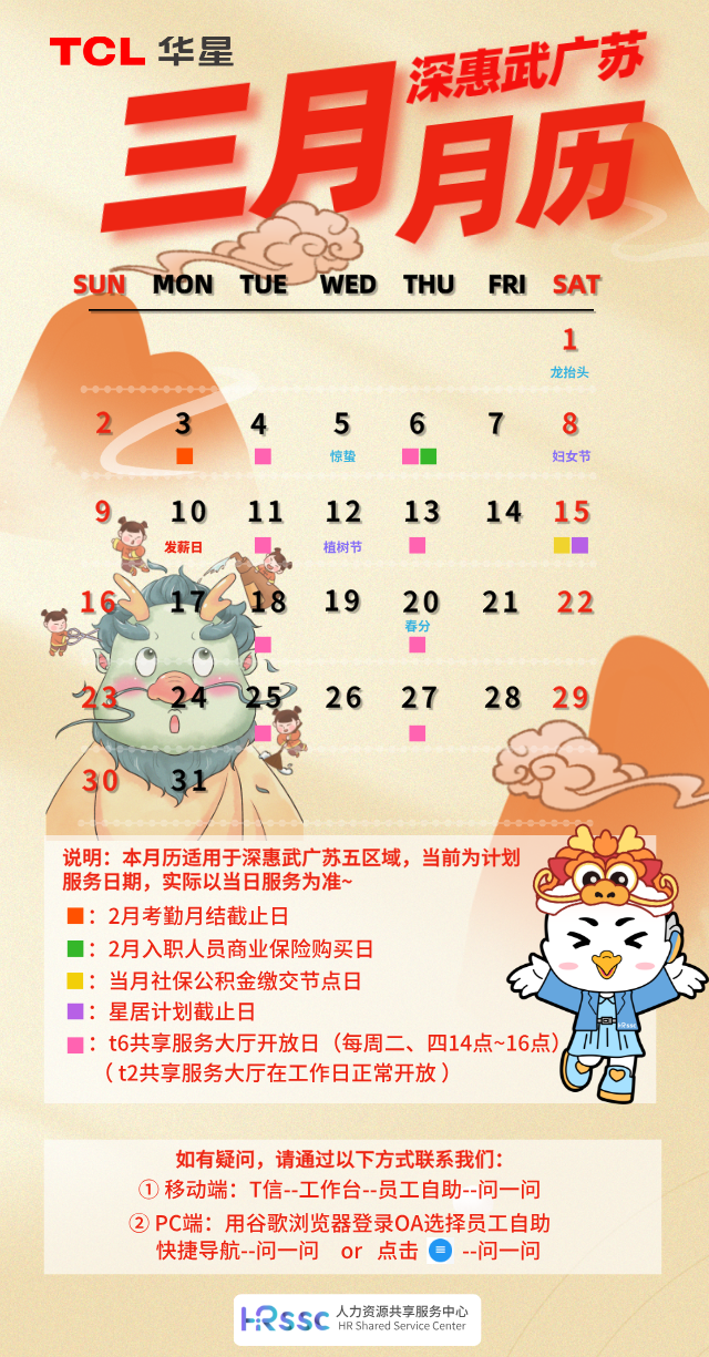 HR SSC 三月服务月历