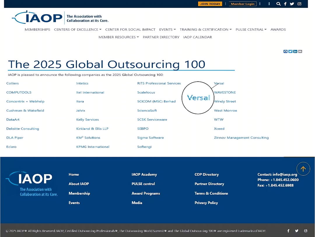 日前,国际外包专业协会 (IAOP) 发布了2025全球最佳外包企业100强榜单,择仕中国成功入选。
