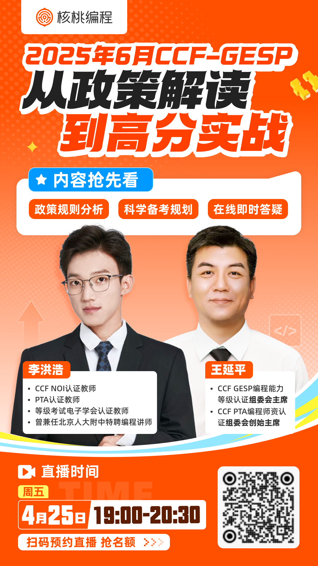 4月25日,核桃特为大家带来GESP专家政策解读直播讲座!